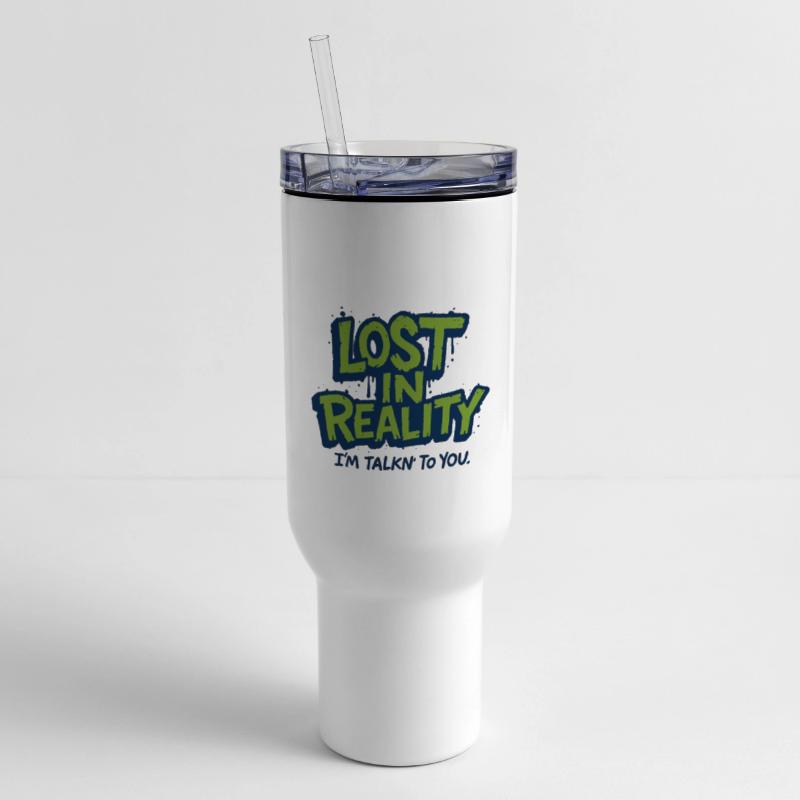 - Travel tumbler with lid and handle