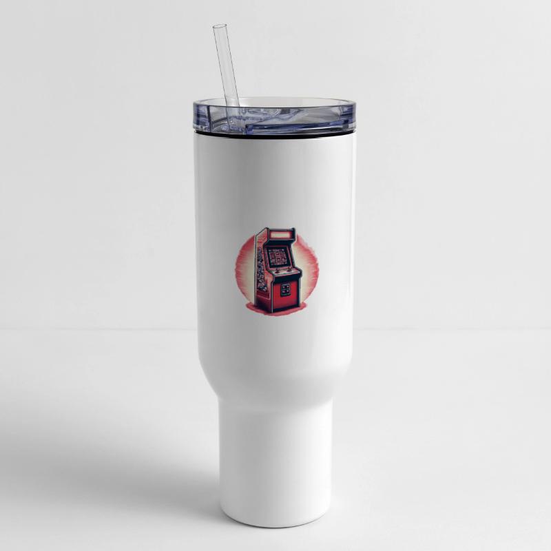 - Travel tumbler with lid and handle